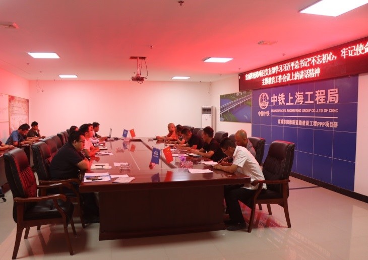 ??6月17日,宣城市陽(yáng)德路道路建設(shè)工程ppp項(xiàng)目黨支部開(kāi)展“學(xué)習(xí)習(xí)近平總書(shū)記‘不忘初心、牢記使命’主題教育工作會(huì)議上的講話(huà)精神”專(zhuān)題黨課。項(xiàng)目黨組織負(fù)責(zé)人主持學(xué)習(xí),項(xiàng)目部全體員工參加。