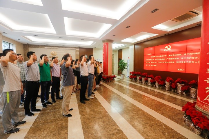 為慶祝建黨98周年,公司機(jī)關(guān)黨總支于7月1日組織機(jī)關(guān)黨員開(kāi)展“不忘初心,牢記使命”重溫入黨誓詞集體宣誓活動(dòng),全體在崗黨員在黨徽前進(jìn)行了莊嚴(yán)宣誓。通過(guò)重溫入黨誓詞,大家進(jìn)一步提升黨性意識(shí)、責(zé)任意識(shí),決心以實(shí)際行動(dòng)踐行自己入黨的承諾,立足崗位工作實(shí)際,不忘初心、牢記使