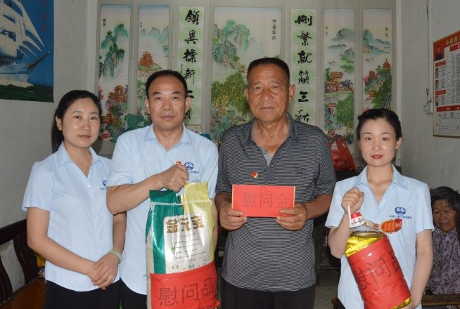 七一前夕,潁上縣城市地表水廠(chǎng)項(xiàng)目黨支部走訪(fǎng)慰問(wèn)項(xiàng)目駐地楊圩村困難老黨員蔣佩云同志,送上關(guān)懷及慰問(wèn)品。