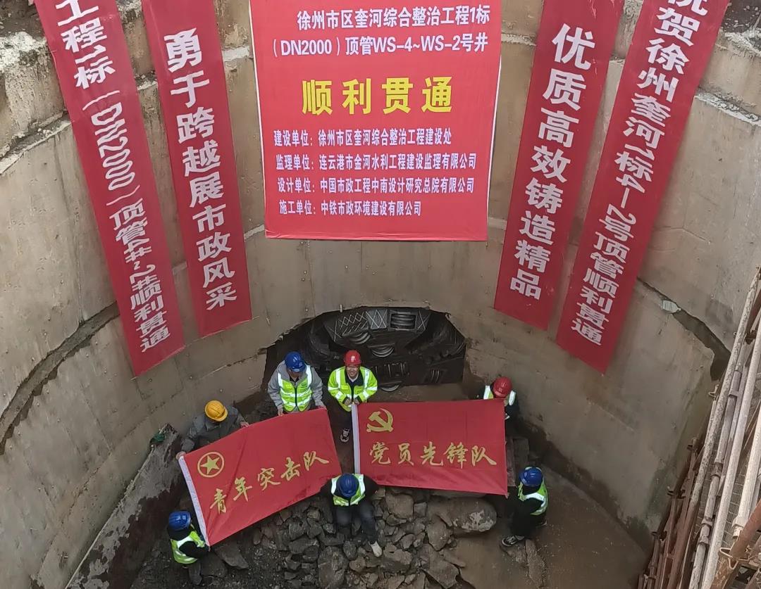 12月14日上午,徐州市區(qū)奎河綜合治理1標(biāo)項(xiàng)目WS-4#~WS-2#段頂管順利貫通。...