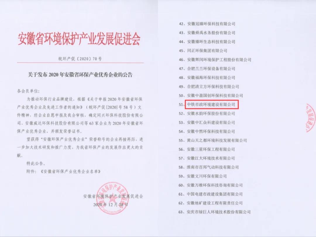 2020年12月,安徽省環(huán)境保護產(chǎn)業(yè)發(fā)展促進會發(fā)布“2020年安徽省環(huán)保產(chǎn)業(yè)優(yōu)秀企業(yè)”公告、“2020年安徽省AAA級環(huán)保施工示范工地”通知及“2020年安徽省環(huán)保產(chǎn)業(yè)優(yōu)秀企業(yè)及先進工作者”的公告。...