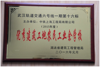 公司武漢地鐵6號線16標(biāo)項(xiàng)目部農(nóng)民工業(yè)校榮獲