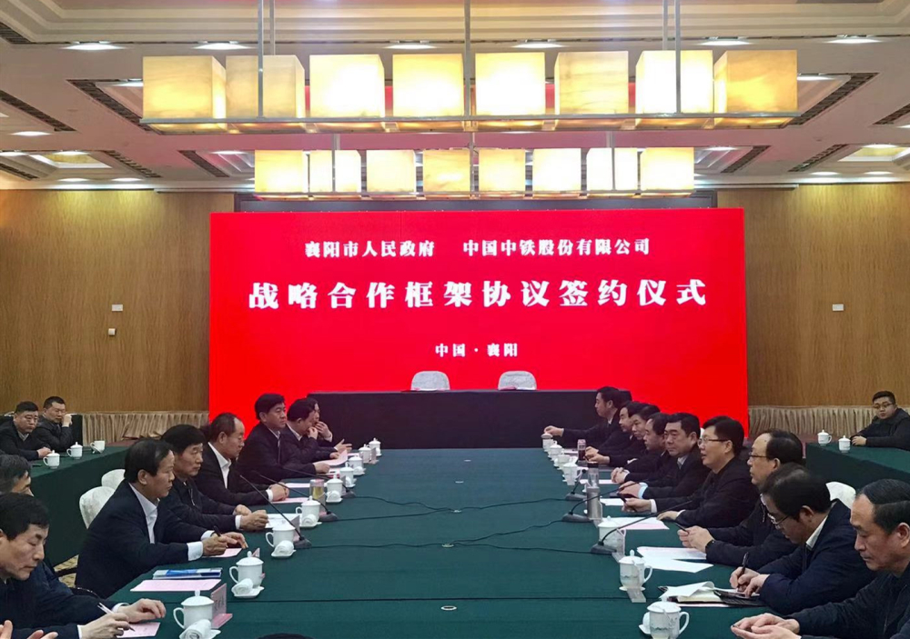 12月19日,中國(guó)中鐵與襄陽(yáng)市政府戰(zhàn)略合作協(xié)議在襄陽(yáng)市簽訂。襄陽(yáng)市委副書(shū)記、市長(zhǎng)郄英才,常務(wù)副市長(zhǎng)王忠運(yùn)、副市長(zhǎng)李德璋、市政府秘書(shū)長(zhǎng)尚顯強(qiáng)、副秘書(shū)長(zhǎng)石昌清等領(lǐng)導(dǎo),中國(guó)中鐵總裁張宗言、副總裁段永傳出席簽約儀式。簽約儀式由襄陽(yáng)市常務(wù)副市長(zhǎng)王忠運(yùn)主持。