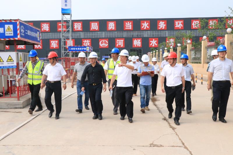 4月25日,廣州市水務(wù)投資集團有限公司董事長范瑞威一行到公司承建的廣州瀝滘污水處理廠項目檢查指導(dǎo)工作。廣州市凈水有限公司董事長孫偉、總經(jīng)理李子逵、副總經(jīng)理陳鍔鳴,集團公司華南經(jīng)營部黨工委書記魏其濤,公司總經(jīng)濟師王小波等陪同。