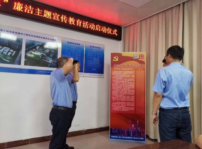 福州工程項目開展“清風市政”廉潔主題宣傳教育活動。6月7日下午,福州工程項目黨支部舉行第三屆企業(yè)文化節(jié)“清風市政”廉潔主題宣傳教育活動啟動儀式。會上,項目黨支部書記劉進春介紹了本項目的具體活動實施方案和工作部署,并對項目全體員工進行工作動員和提出要求。隨后,項目職工集體現(xiàn)場觀看《忠廉愛國,十代將門》廉政文化教育片,以谷府折家“忠廉”家風為榜樣,引導大家從自身做起,重視家風建設,樹立忠于國家、以廉為榮的價值觀。最后,項目領導班子成員進行了廉潔從業(yè)公開承諾,并依次在承諾公示牌上進行簽名,紛紛表示將自覺踐行廉潔從業(yè)承諾內(nèi)容,堅持遵規(guī)守紀、廉潔從業(yè),為全體職工做好“忠廉”表率。(王迪)