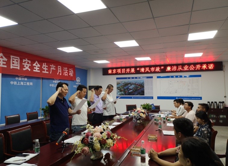 南京浦口水廠改擴建項目部組織開展項目領導人員廉潔從業(yè)公開承諾活動。6月12日,南京工程項目黨支部組織浦口水廠改擴建項目部領導人員開展廉潔從業(yè)公開承諾活動,項目部全體員工參加。會上,項目黨支部副書記關(guān)立華傳達學習了公司黨委關(guān)于開展“清風市政”廉潔主題宣傳教育活動的通知,接著組織全體員工觀看了廉潔教育警示片《沉淪》,通過違紀違規(guī)受到懲處的真實案例,警示大家進一步增強紀律意識、規(guī)矩意識和責任意識,自覺做到遵規(guī)守紀、廉潔從業(yè)。隨后,項目部領導班子成員在全體員工面前進行廉潔從業(yè)公開承諾,并在承諾公示牌上逐一簽名。會后,項目黨支部將領導人員的廉潔從業(yè)承諾書在駐地黨務公開欄進行公示,廣泛接受職工群眾監(jiān)督。(劉圣濤)