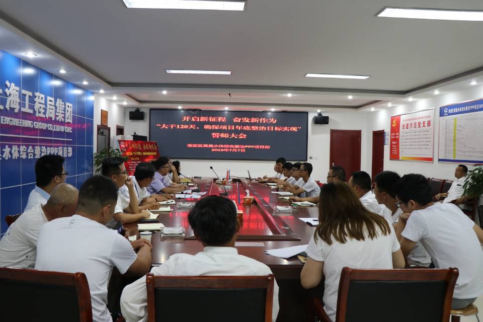 7月7日,公司承建的淮安區(qū)黑臭水體綜合整治PPP項(xiàng)目部召開“大干120天,確保項(xiàng)目年底整治目標(biāo)實(shí)現(xiàn)”誓師大會(huì)。項(xiàng)目黨組織學(xué)習(xí)傳達(dá)了公司黨委“保持戰(zhàn)略定力,堅(jiān)定發(fā)展決心,立足新的起點(diǎn)推動(dòng)企業(yè)塑造新的輝煌”的精神, 深刻認(rèn)識集團(tuán)公司核心業(yè)務(wù)板塊優(yōu)化組合對于推進(jìn)企業(yè)高質(zhì)量發(fā)展的重大意義。要求全體員工圍繞年底基本消除黑臭水體整治目標(biāo),加強(qiáng)工期、安全、質(zhì)量、文明施工卡控,以高度企業(yè)責(zé)任感與奉獻(xiàn)精神,在“大干120天”競賽活動(dòng)中履職盡責(zé)、創(chuàng)先爭優(yōu),顯示價(jià)值、展現(xiàn)作為,快速成長,為實(shí)現(xiàn)公司2019年度生產(chǎn)營銷既定目標(biāo)貢獻(xiàn)心力。