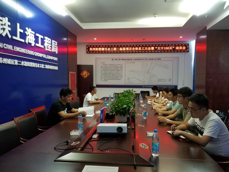 蘇州陽澄湖引水工程二標(biāo)段項(xiàng)目部:組織項(xiàng)目部全體員工宣貫公司會(huì)議精神,并召開“大干150天”活動(dòng)動(dòng)員會(huì),結(jié)合項(xiàng)目實(shí)際情況對(duì)后5個(gè)月的工作進(jìn)行了安排部署:一是根據(jù)公司“大干150天”活動(dòng)施工生產(chǎn)計(jì)劃,詳細(xì)制定頂管、沉管施工工期節(jié)點(diǎn),明確大干期間工作任務(wù)。二是深入施工現(xiàn)場(chǎng)查缺補(bǔ)漏,確保人、機(jī)、料在大干期間滿足施工生產(chǎn)需求,保證工程進(jìn)度、質(zhì)量、安全全部達(dá)標(biāo)。三是項(xiàng)目全體員工要有緊迫感,打起百分之百的精神,干好本職工作,借大干150天熱潮,完成公司下達(dá)的產(chǎn)值指標(biāo)。(秦旖旎)