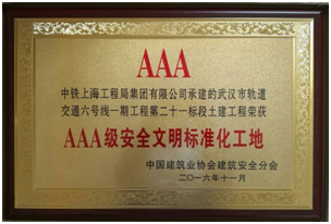 11月30日, 2016年度全國“AAA級安全文明標(biāo)準(zhǔn)化工地”表彰大會(huì)在安徽合肥召開,公司承建的武漢軌道交通六號(hào)線一期第二十一標(biāo)段土建工程喜獲本年度“AAA級安全文明標(biāo)準(zhǔn)化工地”。武漢市軌道交通六號(hào)線一期第二十一標(biāo)段土建工程位于武漢市東西湖區(qū)金山大道,包括環(huán)湖西路站、金銀湖停車場以及出入場線區(qū)間,合同總造價(jià)50258萬元。自開工建設(shè)以來,項(xiàng)目部高度重視現(xiàn)場文明施工和標(biāo)準(zhǔn)化管理,施工過程中嚴(yán)格落實(shí)行業(yè)各項(xiàng)管理制度和中鐵上海局各項(xiàng)安全管理內(nèi)控制度。項(xiàng)目部以安全生產(chǎn)責(zé)任制為核心,建立健全安全文明施工管理制度及保證體系,狠抓全員安全教育培訓(xùn)和班組長安全質(zhì)量責(zé)任制工作,通過全員安全教育、安全技術(shù)交底、開辦農(nóng)民工夜校、班前安全講話、事故案例學(xué)習(xí)、月度大檢查等多種形式,營造濃厚的安全生產(chǎn)氛圍,提高員工安全質(zhì)量意識(shí)和文明施工意識(shí),確保現(xiàn)場安全生產(chǎn)。