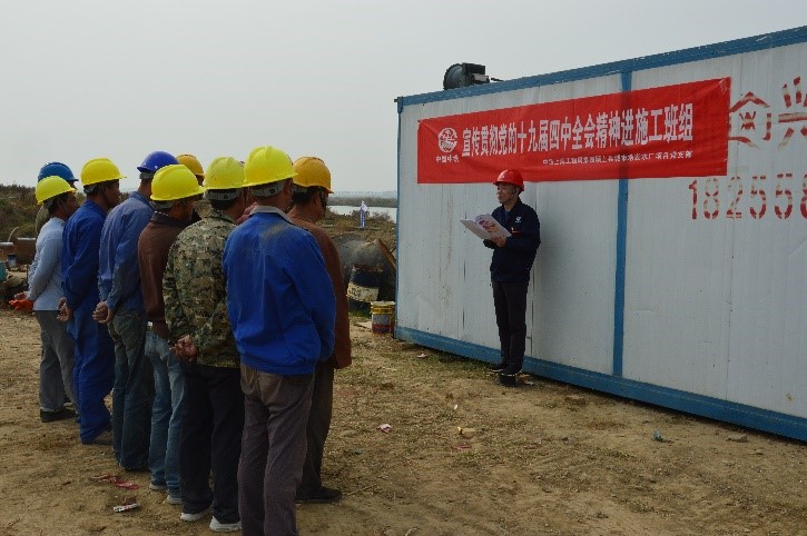 11月7日,潁上項目黨支部組織進工區(qū)、進班組活動宣貫黨的十九屆四中全會精神。潁上水廠項目分為三個施工區(qū),相互距離較遠,且處于施工任務(wù)攻堅的關(guān)鍵階段,為使黨的十九屆四中全會精神及時宣貫到項目的每名黨員干部、施工一線工人,落實黨的基層組織建設(shè),黨支部決定開展宣貫進工區(qū)、進班組活動。每到一處宣貫現(xiàn)場,項目書記向大家宣講會議召開背景、全會提出的總體目標、工作要求等內(nèi)容,并結(jié)合專家解讀重申重點內(nèi)容,要求黨員干部統(tǒng)一思想和行動,以強烈的思想自覺、政治自覺和行動自覺,攻堅克難、銳意進取,為加快推進項目施工建設(shè),力保通水目標實現(xiàn)而努力奮斗。結(jié)合項目建設(shè)存在的問題和面臨的困難,項目書記對項目下步工作做出以下部署:一是聚焦思想,項目部全體員工要認真貫徹落實會議精神,以精神促思想,以思想保建設(shè)。二是充分發(fā)揮黨員模范示范作用、黨支部戰(zhàn)斗堡壘作用,黨員干部要找差距、抓落實,解決項目的難點熱點問題,力保節(jié)點目標完成。三是嚴格制度落實,提升項目建設(shè),確保 “職工小家”建設(shè)有內(nèi)涵,員工有獲得感、幸福感、榮譽感。(楊巧巧)