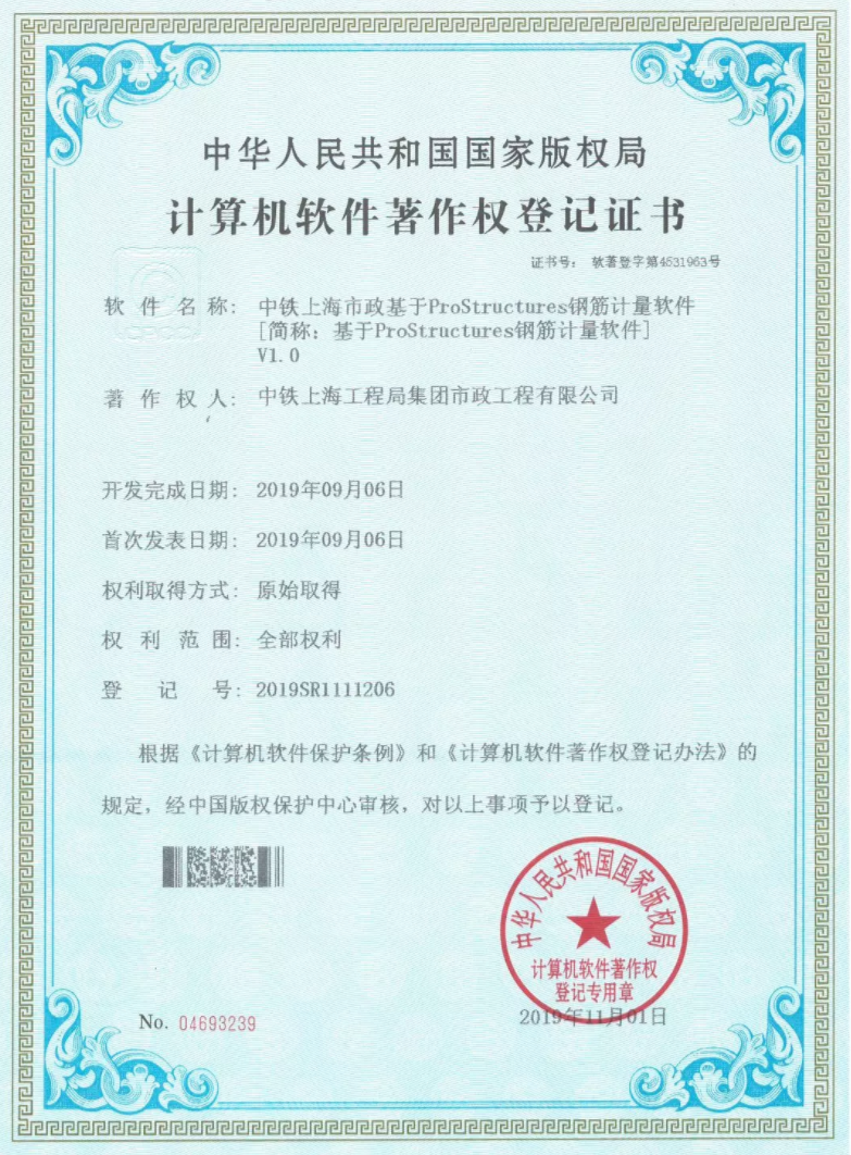 近日,從國家版權(quán)局傳來喜訊,公司技術(shù)創(chuàng)新工作又獲新突破!公司自主研發(fā)的“中鐵上海市政測量放樣記錄軟件”“中鐵上海市政基于ProStructures鋼筋計量軟件”通過中國版權(quán)保護(hù)中心審核,獲得國家版權(quán)局計算機(jī)軟件著作權(quán)授權(quán),并取得了著作權(quán)登記證書。計算機(jī)軟件著作權(quán)是企業(yè)科技研發(fā)工作的一項重要指標(biāo),此次一次性獲批兩項國家版權(quán)局計算機(jī)軟件著作權(quán),是公司高度重視軟件及信息化技術(shù)開發(fā)的成果,表明公司自主研發(fā)取得的獨立知識產(chǎn)權(quán)得到了權(quán)威認(rèn)可和肯定。