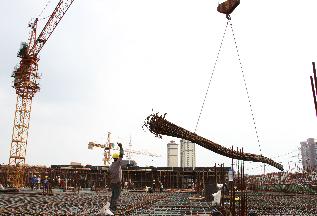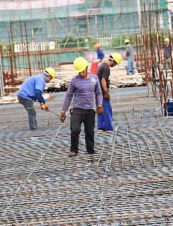2015年9月25日拍攝,在昆山北區(qū)污水廠三期擴(kuò)建工程施工現(xiàn)場工人們正在作業(yè)。 |