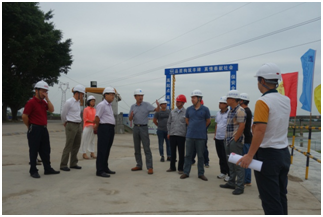 趙劍一行依次查看了新建三夾橋、防洪工程的施工現(xiàn)場(chǎng),聽取了項(xiàng)目負(fù)責(zé)人對(duì)工程概況、進(jìn)度計(jì)劃及施工重難點(diǎn)的匯報(bào)。趙劍雄對(duì)鶴山市沙坪河綜合整治工程項(xiàng)目現(xiàn)場(chǎng)安全防護(hù)、文明施工、形象宣傳等給予了充分肯定,并要求項(xiàng)目部嚴(yán)把安全質(zhì)量關(guān),充分利用施工黃金季節(jié)加快施工進(jìn)度,確保在合同工期內(nèi)完成工程任務(wù),早日造福鶴山人民。