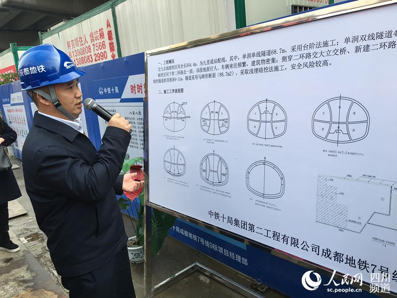 在成都二環(huán)路北一段高架橋的下方,地鐵七號線西南交大站—九里堤站的隧道正在施工,橋基從隧道旁“擦肩而過”,最近的地方僅有2.8米。為了保證路面交通暢通和高架橋的穩(wěn)定,地鐵施工放棄盾構(gòu)機(jī),首次采用雙側(cè)壁導(dǎo)坑法分六步,人工開挖。