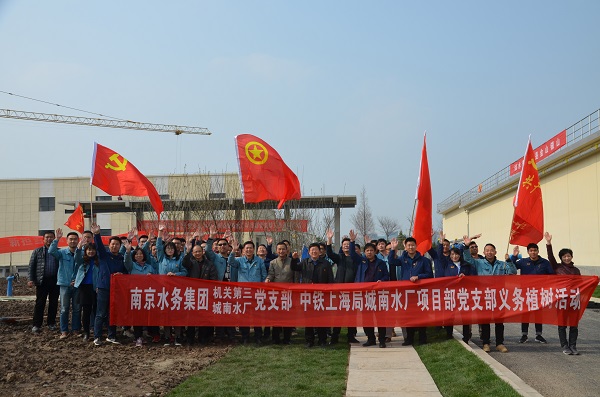 3月22日,南京水務集團機關第三、城南水廠黨支部聯(lián)合中鐵上海局南京夾江(城南水廠)取水口整合項目部黨支部開展義務植樹活動。南京市城建集團黨委委員、南京水務集團黨委書記、董事長單國平,副總經(jīng)理宋非,中鐵上海局市政公司副總經(jīng)理張杰,副總經(jīng)理何維義及部分黨員、職工等60多人參加此次活動。