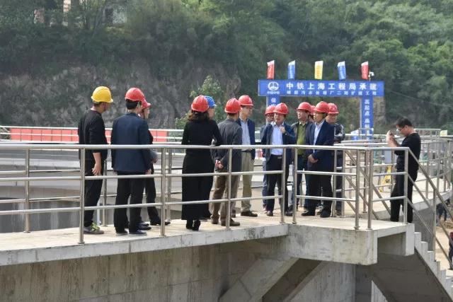 4月25日下午,浙江省治水辦督查組組長(zhǎng)鄧顯平、副組長(zhǎng)吳俊在紹興市政府副秘書長(zhǎng)、嵊州市副市長(zhǎng)丁貴等人的陪同下到嵊新污水處理廠二期工程檢查指導(dǎo)。